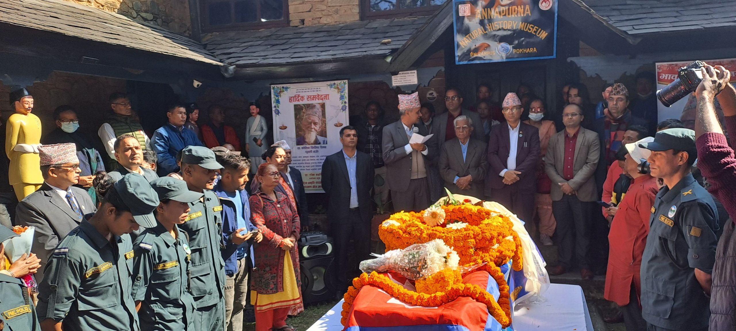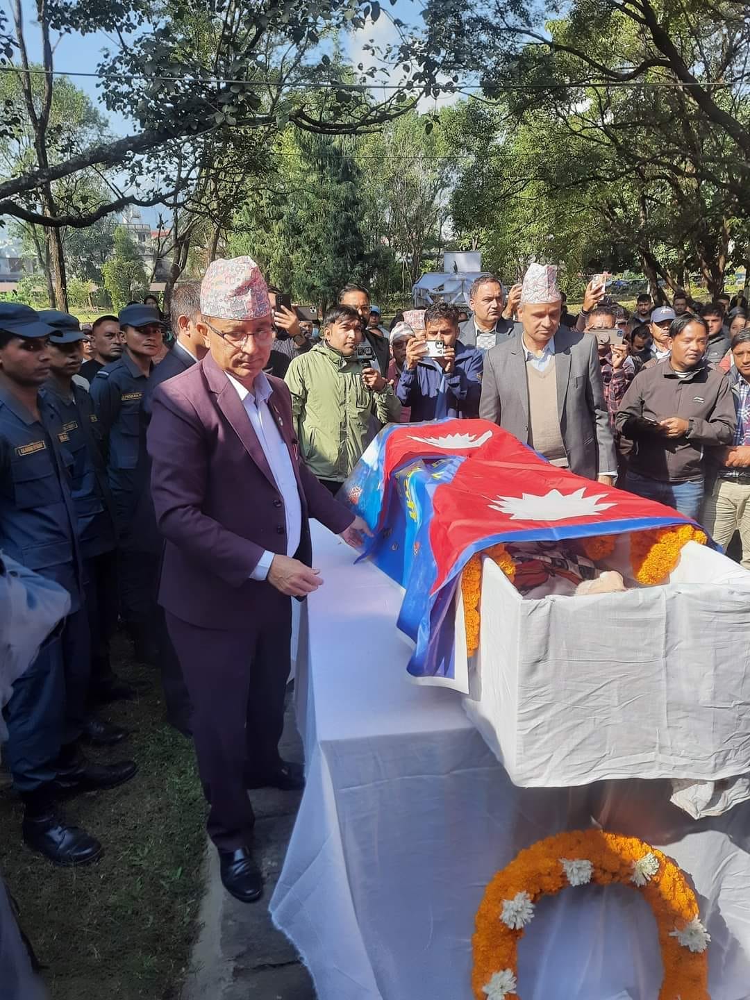 ‘पुतली बाजे’कलीन स्मिथको पार्थिव शरीरलाई अन्तिम श्रद्धाञ्जली अर्पण गर्दै पोखरा महानगरपालिकाका प्रमुख धनराज आचार्य ज्यू ।