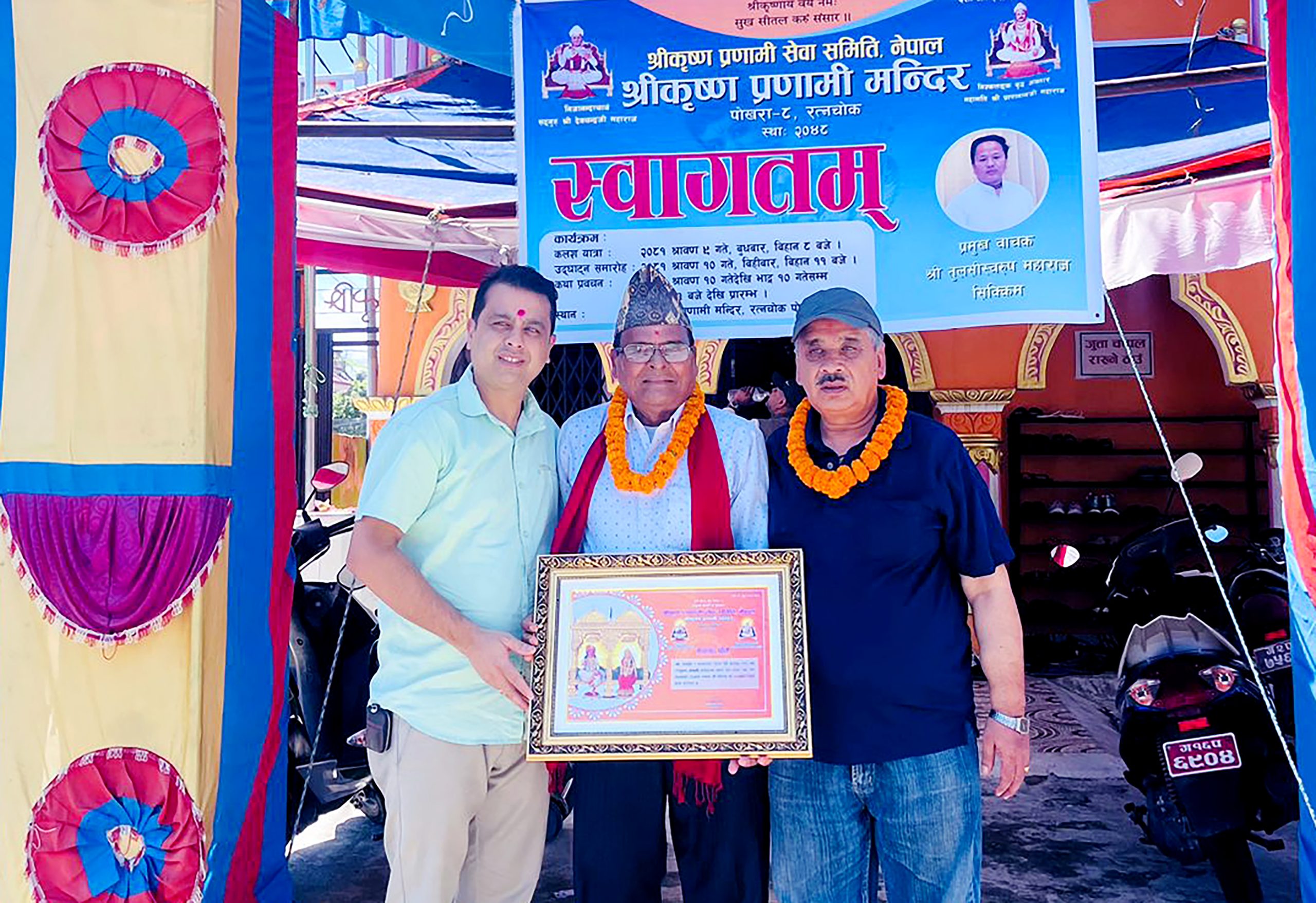 पोखराको रत्नचोक स्थित श्रीकृष्ण प्रणामी मन्दिरमा जारी श्रीमदवीतक चर्चा एवं श्रीकृष्ण कथा प्रवचनमा भक्तजनको उल्लेख्य सहभागीता जनाएका छन । भदौ १० गते श्रीकृष्ण अष्टमी सम्म सञ्चालन हुने उक्त कार्यक्रमको सातौ दिन सम्म आइपुग्दा भक्तजनहरुको उल्लेख्य सहभागीता रहेको श्रीकृष्ण प्रणामी सेवा समितिका अध्यक्ष मोहन प्रसाद ढकालले जानकारी दिए ।