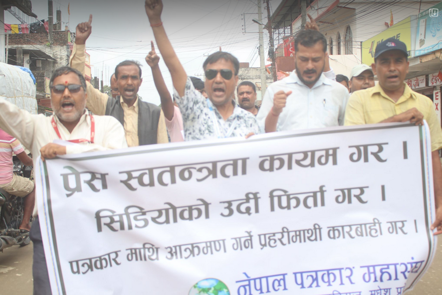 पत्रकारमाथि श्रृंखलावद्ध आक्रमण, दुर्व्यवहार र प्रेस स्वतन्त्रतामाथि अंकुश लगाउन खोजेपछि आन्दोलित बनेका सप्तरीका पत्रकारहरूले साउन २५ गते राजविराजमा विरोध जुलुश सहित, धर्ना र कोण सभा गरेका छन् ।