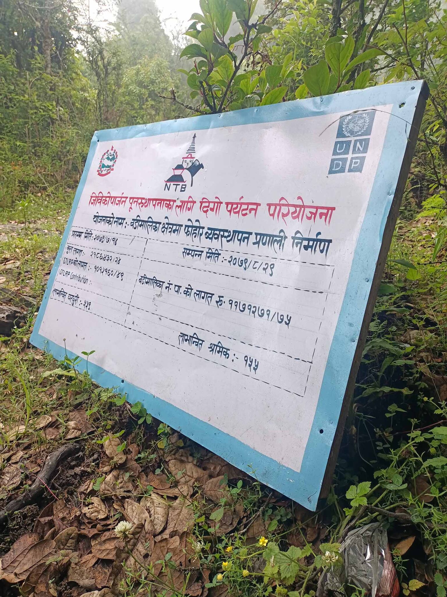 सूचनाको हक प्रयोग गरेर विवरण मागेपछि नेपाल पर्यटन बोर्डले २०७९ कात्तिक २० गते लिखित जवाफ दिंदै बोर्डले प्रवद्र्धनात्मक कार्य मात्रै गर्ने हुँदा निर्माण कार्यमा खर्च नगरेको खुलाएको थियो। तर, बोर्डले हामीलाई जवाफ दिएको ६ दिन अगाडि मात्रै संयुक्त राष्ट्रसंघीय विकास कार्यक्रम (युएनडीपी), नेपाल पर्यटन बोर्ड र बडिमालिका नगरपालिकाको सहकार्यमा रु.२१ लाख ८६ हजार खर्चेर बाजुराको सदरमुकाम मार्तडीबाट केही माथि जंगलको दुई स्थानमा फोहोर व्यवस्थापन गर्ने काठे घर बनाइएको छ।