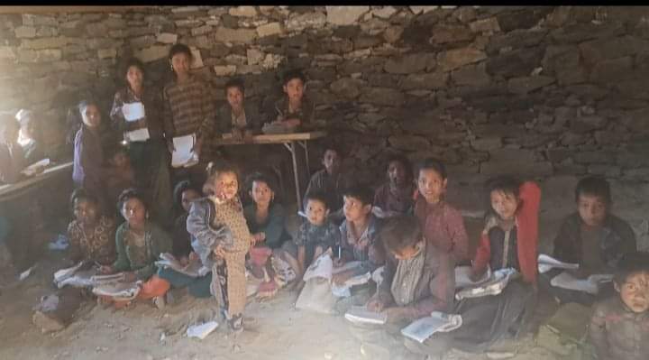 जनजागरण आधारभूत विद्यालयका विद्यार्थी भूइँमा बसेर पठनपाठन गर्न बाध्य