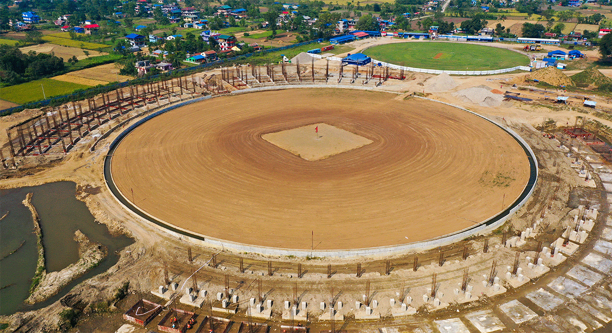 निर्माण रोकिएको गौतमबुद्ध अन्तर्राष्ट्रिय क्रिकेट रंगशालाको काम अघि बढाइँदै