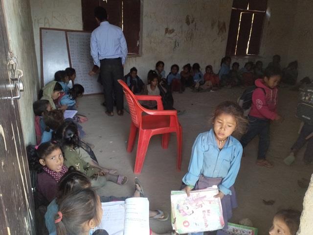 आदर्श आधारभूत विद्यालयमा अध्ययनरत बालबालिहरु चिसो भुइँमा बसेर बढ्न बाध्य